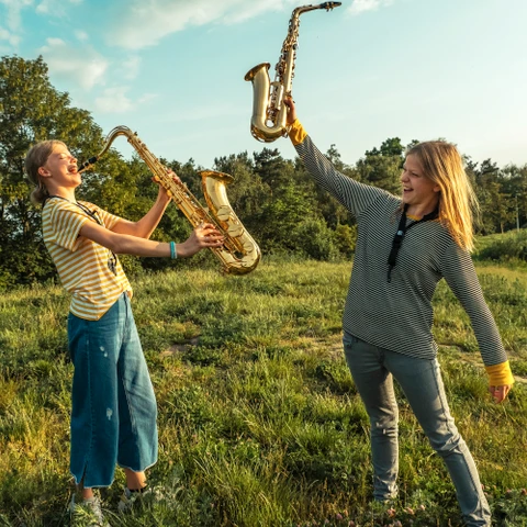 Aske spiller Pink Yesterday på Barytonsaxofon